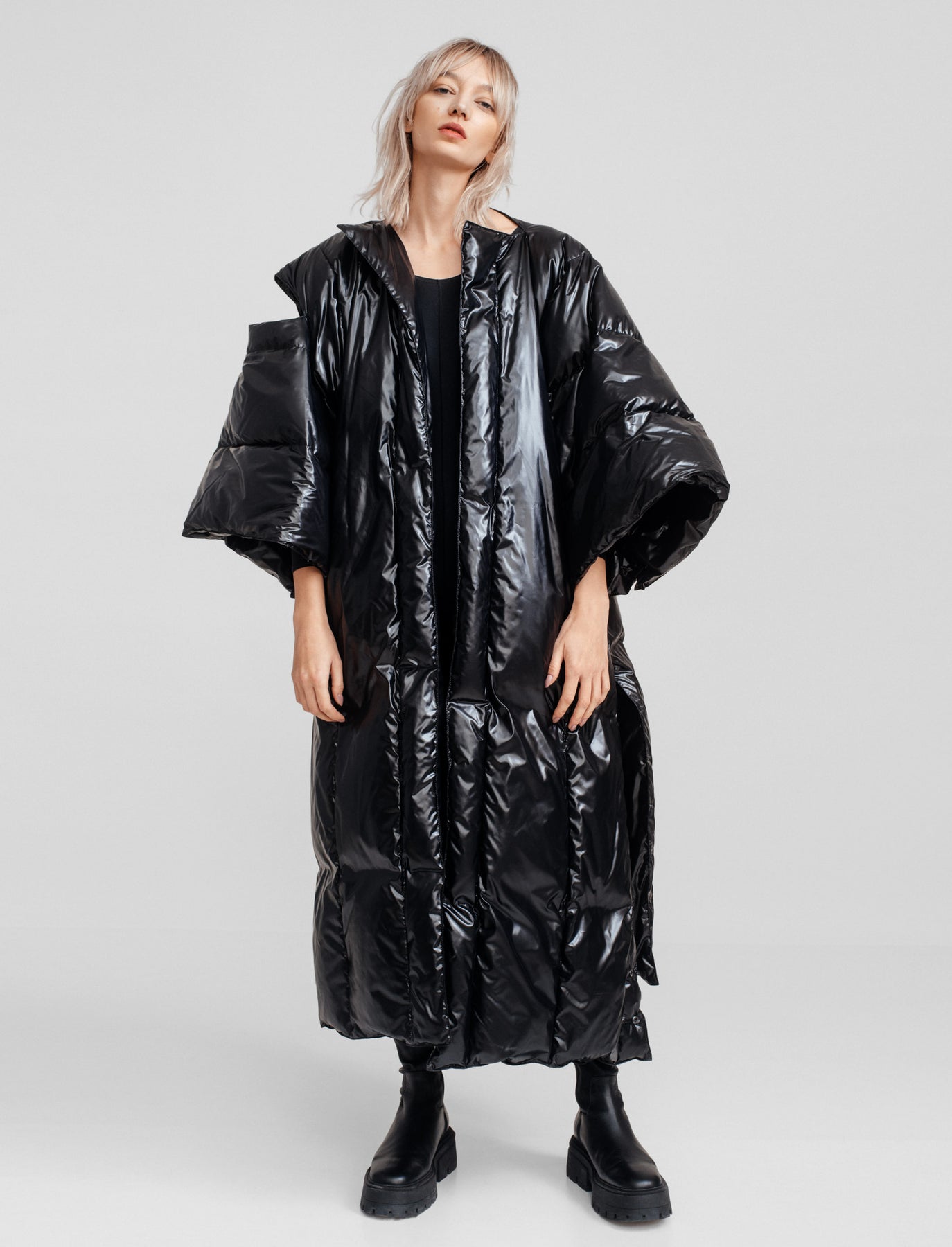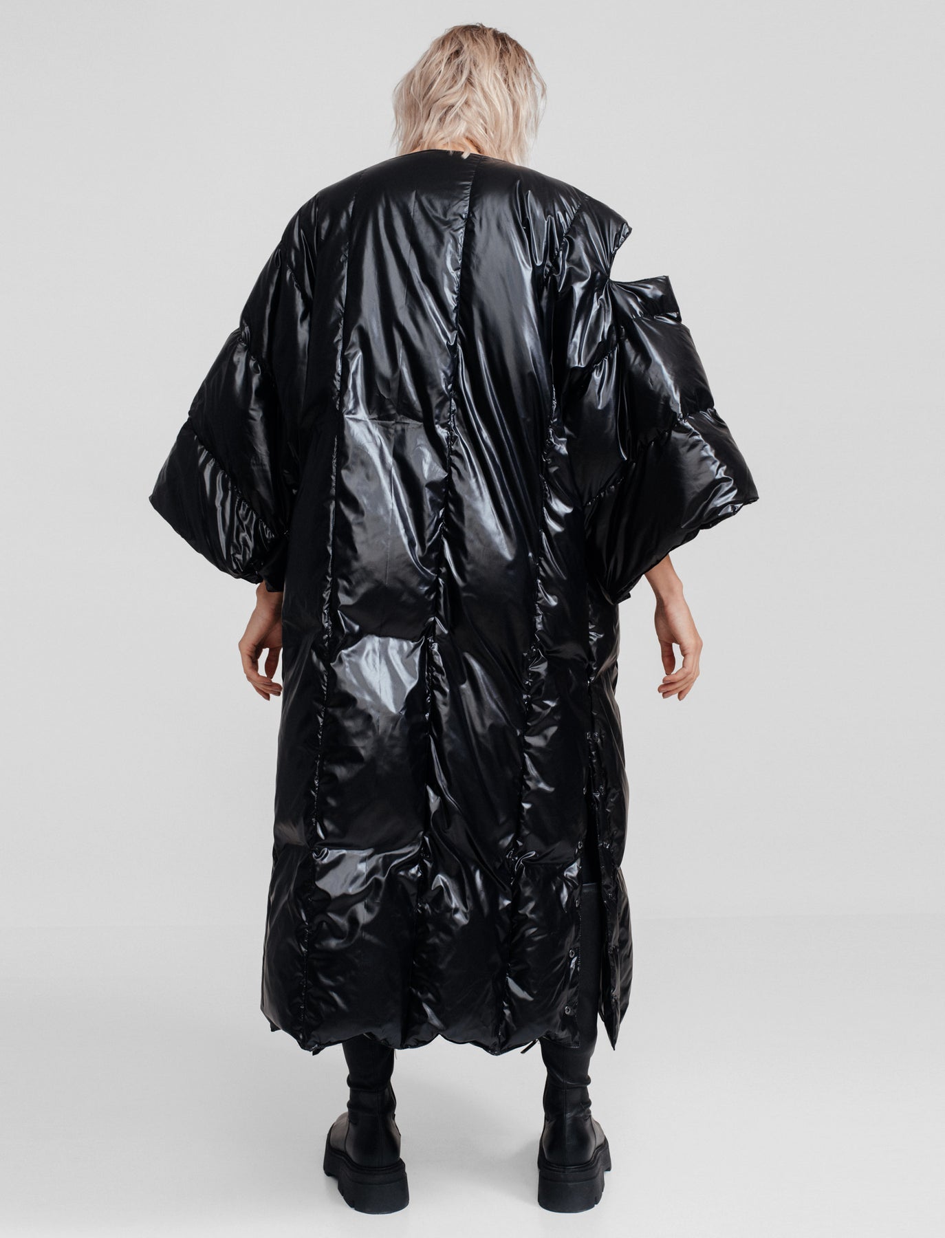 Cukovy invites you to make your own shiny black jacket with this playful down-filled convertible vest. Cukovy's iconic goose down piece is just what every rebel's wardrobe needs.