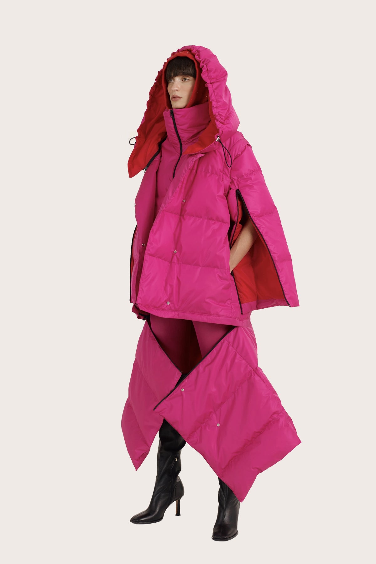Our iconic puffer jacket with detachable sleeves and zip opening on the hood will definitely turn heads. Featuring our signature logo on the back, it was made to stand out from the crowd.