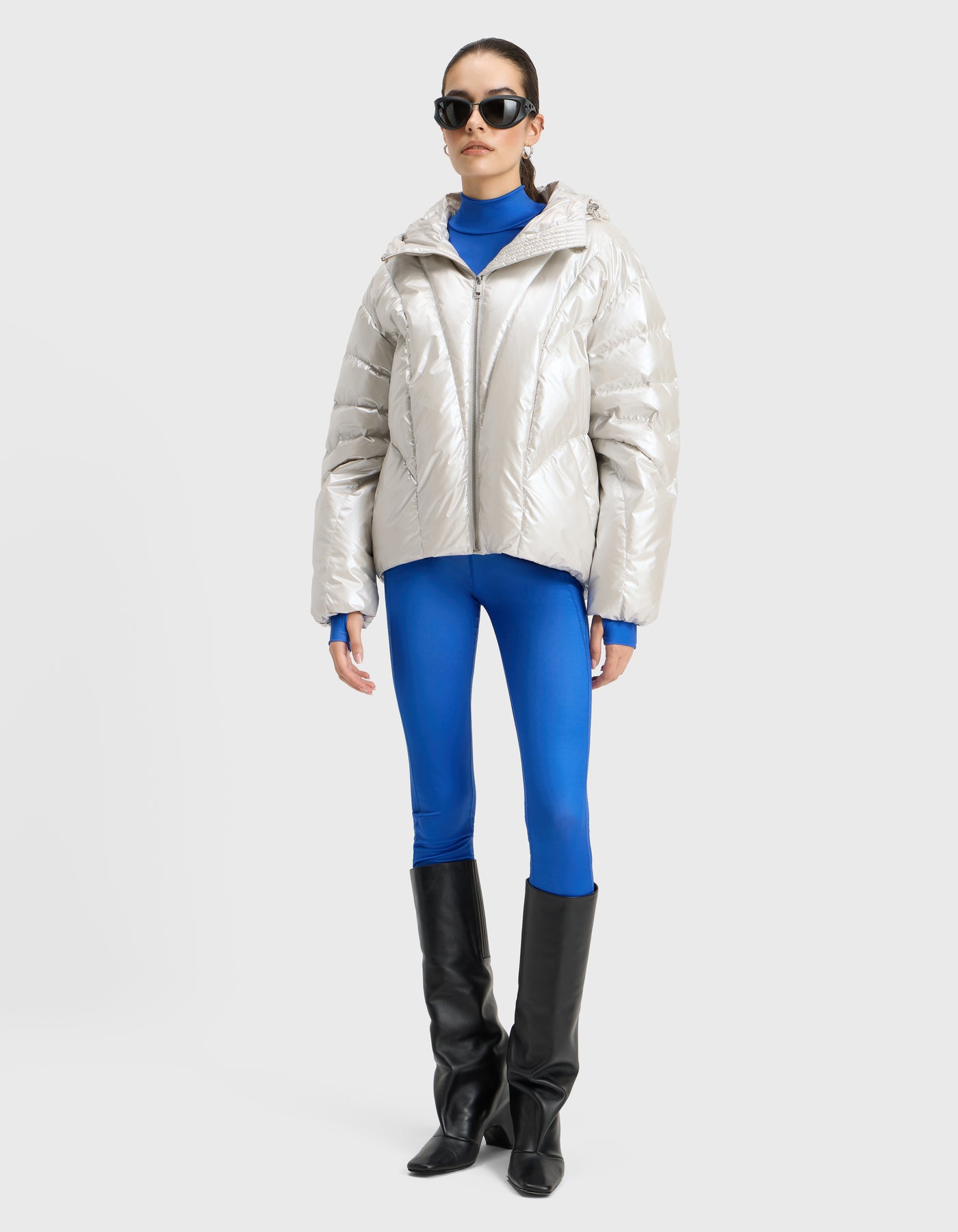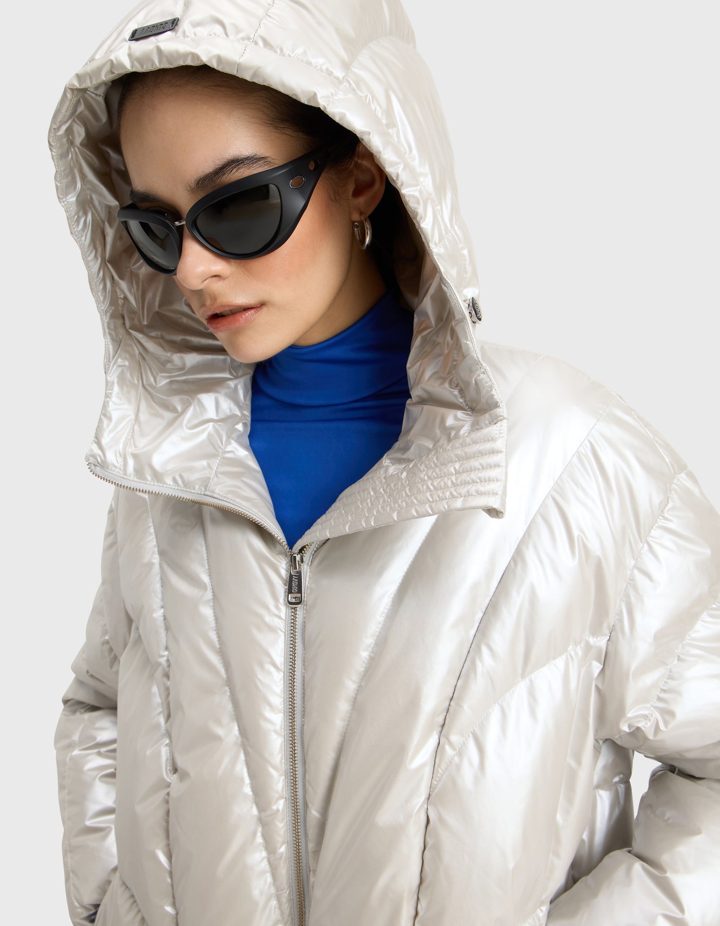 FRIDA is a short puffer that transforms style and silhouette. Its adjustable hem can be cinched to create a rounded, “bubble” shape, while a front zip closure and hood ensure functionality. Elasticated cuffs on the sleeves provide wind protection, and multiple pockets add practicality, making it a versatile and playful outerwear piece.