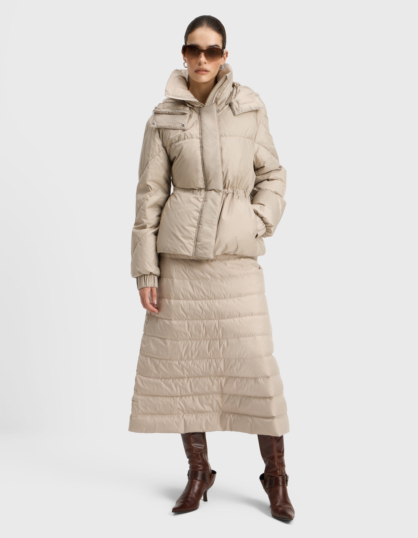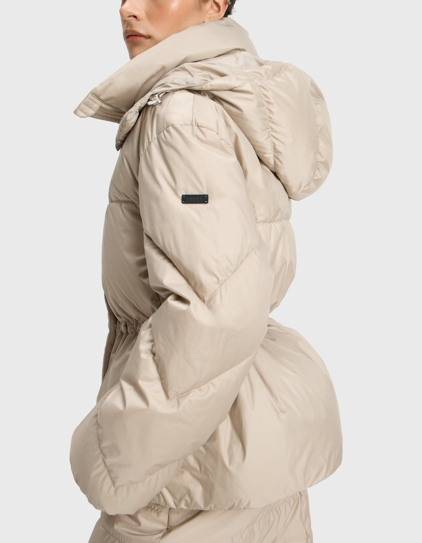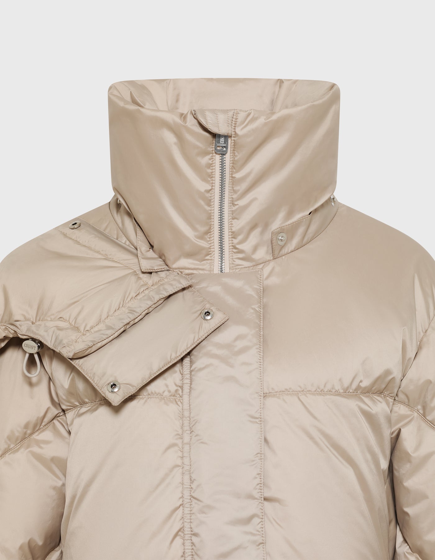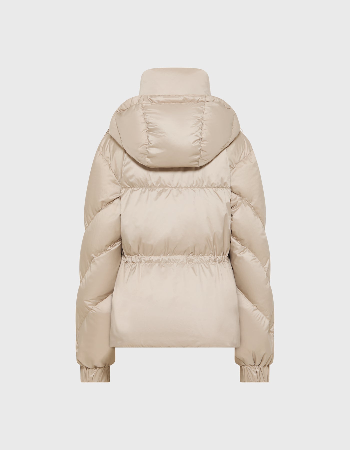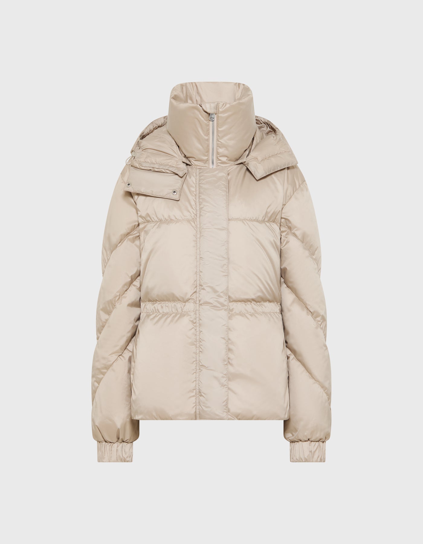 IRA is a mid-length puffer that combines warmth with modern style. Reaching just below the hips, it features an adjustable internal waist with two drawcords for a personalized fit. Concealed zip pockets are integrated into subtly forward-placed side seams, and a detachable hood completes the design. Lightly quilted and filled with down, it’s a perfect wardrobe essential for cold days.