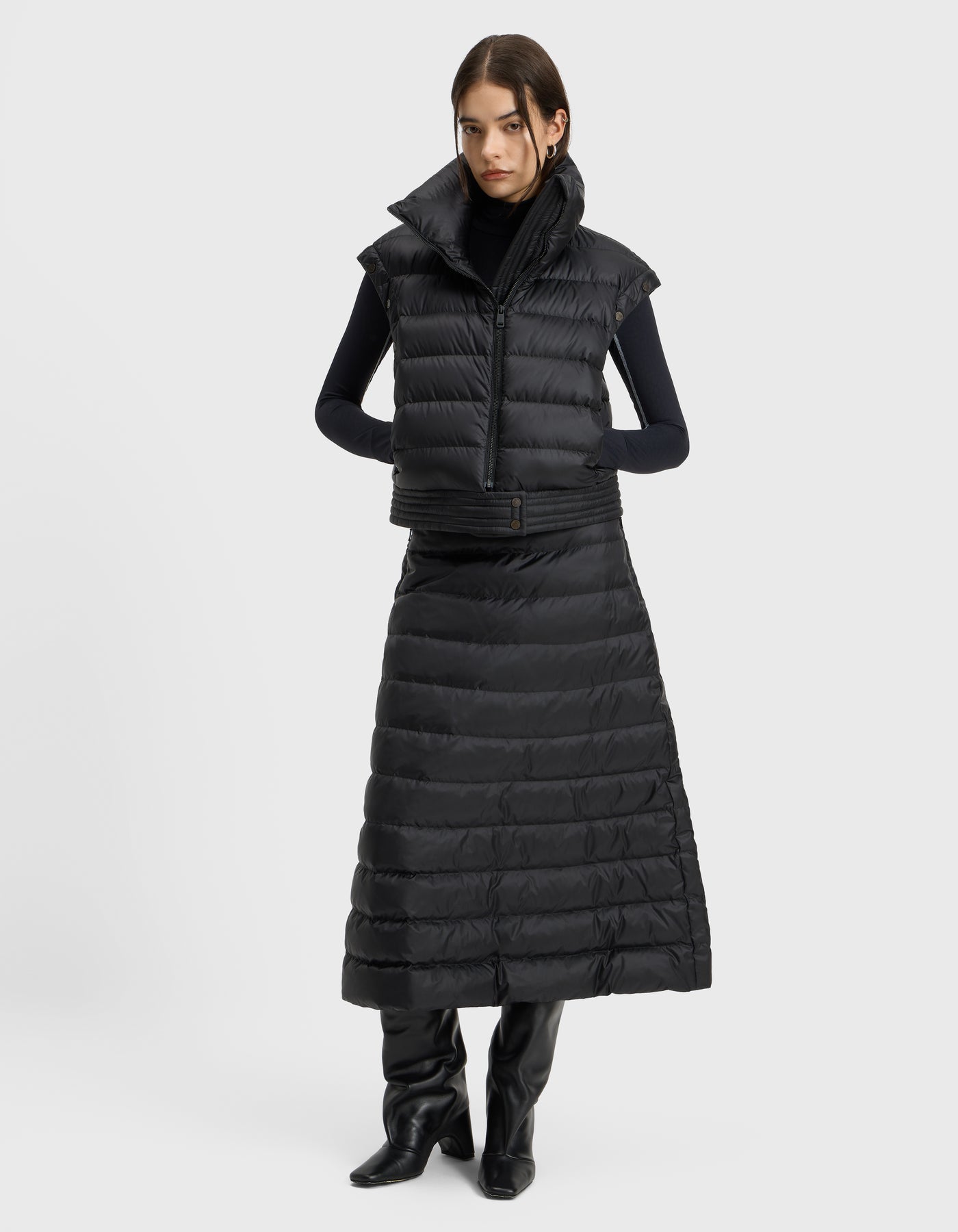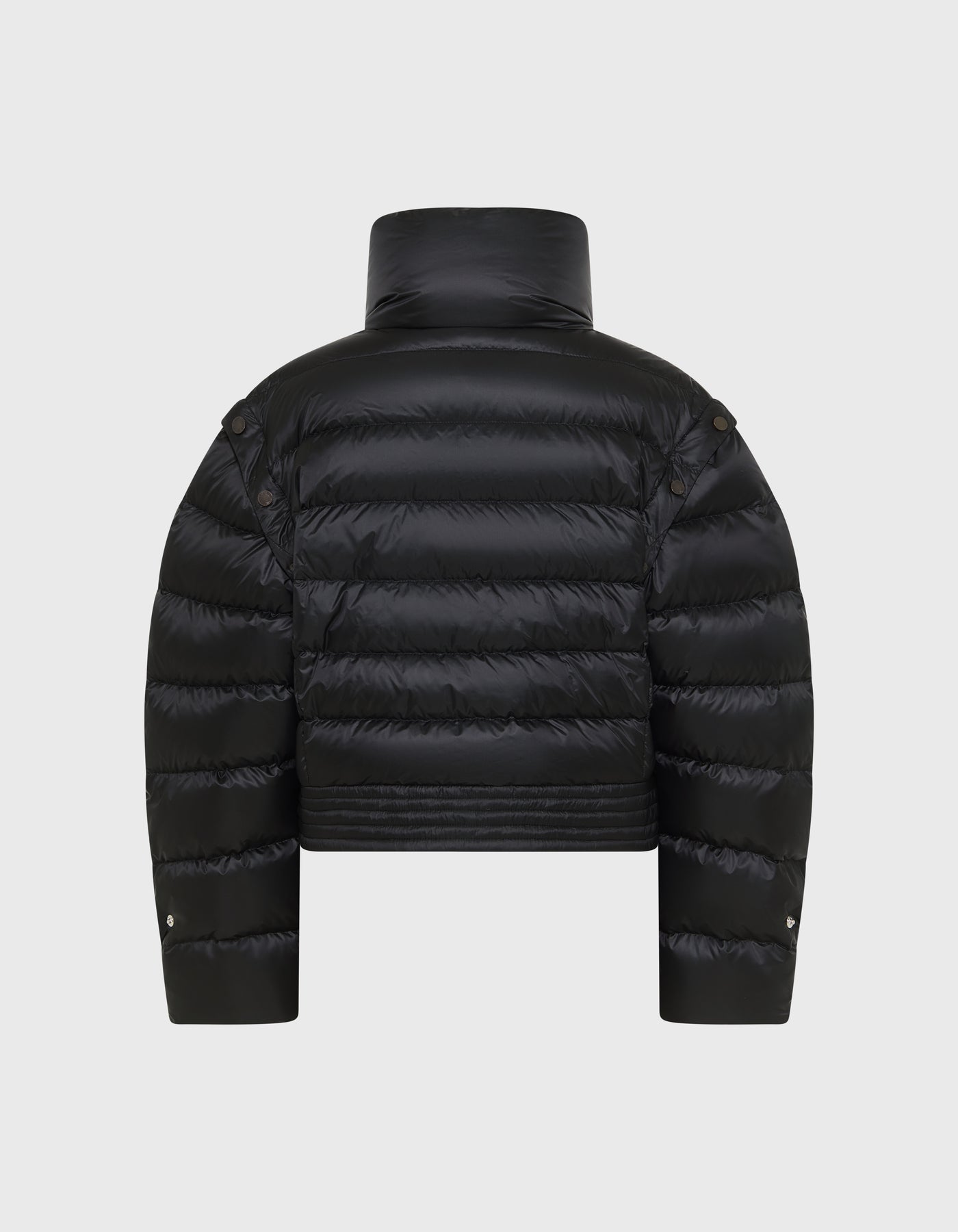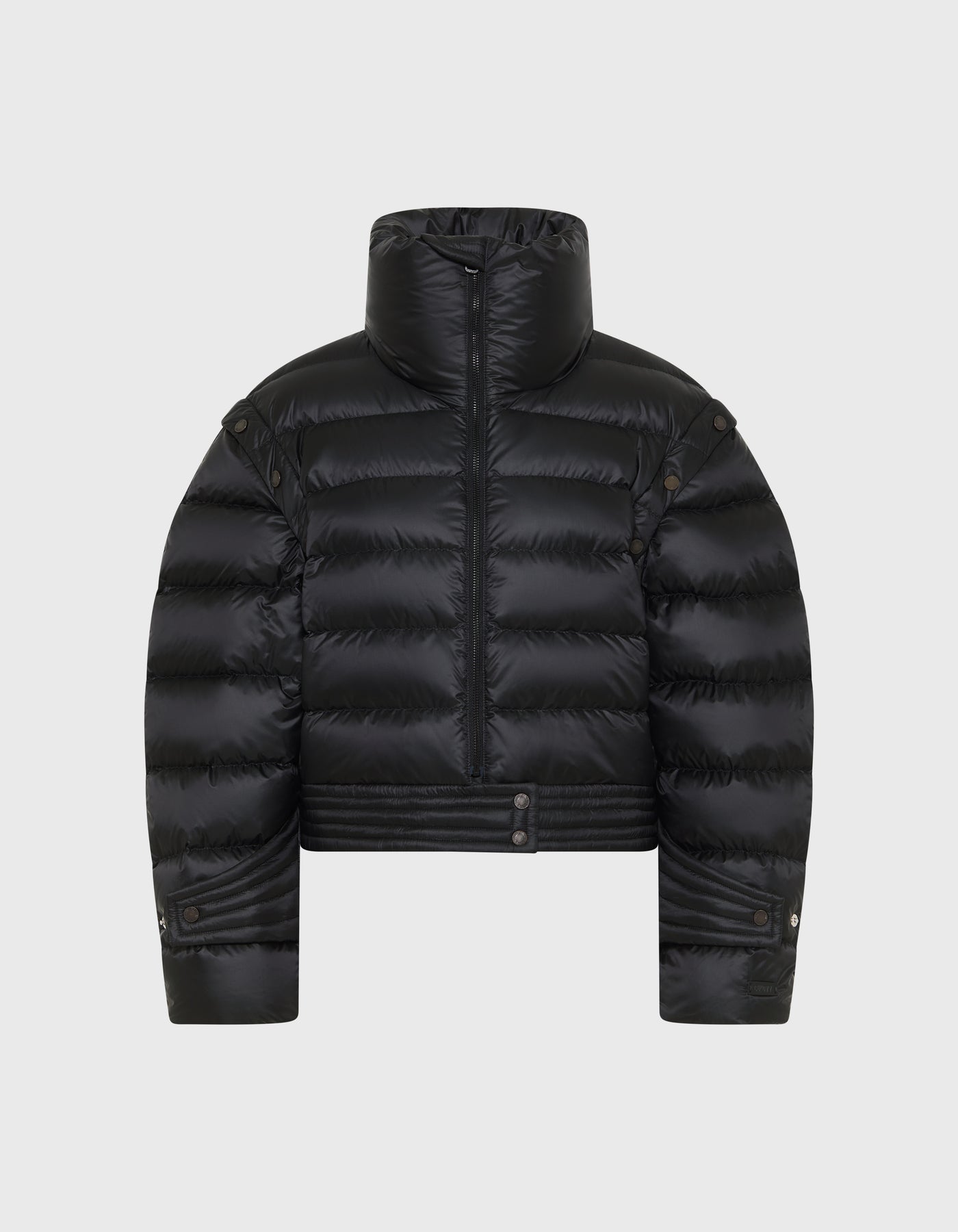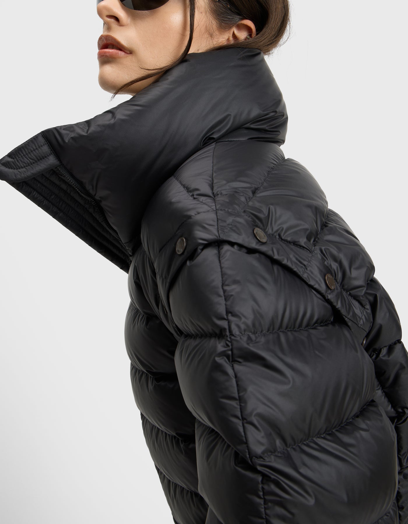 POPPY is all about adaptability. With detachable sleeves that transform it into a vest, and a sculptural banana-shaped sleeve design featuring snap-button details, it merges function with a modern edge. The horizontally quilted high collar reaches the lips, ensuring style and wind protection in one.